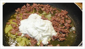 - Sciogli in una padella il burro nell'olio. Spella le salsicce e schiacciale con una forchetta, falle rosolare e aggiungi una spruzzata di vino bianco.
