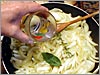 tagliate fini con un goccio d'olio, la maggiorana, l'alloro, il brodo